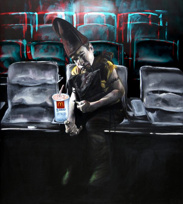 SOLD Oil & Print on Canvas, 107 x 95 cm, 2014, framed
